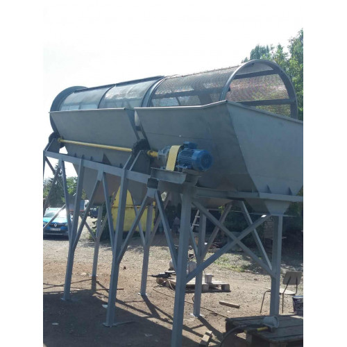 Виробляємо і продаємо барабанні грохоти з обертальним рухом робочого органу. Барабанні грохоти за формою барабана бувають циліндричними і конічними. Робочим органом барабанного гуркоту є бічна поверхня, утворена перфорованими сталевими аркушами або сіткою. Вісь циліндричного барабана нахилена до горизонту зазвичай на 4...7°, вісь конічного розташована горизонтально. Конічні барабанні грохоти застосовують рідко. Діаметр барабанів циліндричних грохотів 500...3000 мм, довжина 2000...9000 мм. Барабанні циліндричні грохоти малих розмірів виготовляють з центральним валом, до якого на спицях кріплять просеивающую поверхню. Важкі барабанні циліндричні грохоти центрального вала не мають і обертаються на бандажах, що опираються на ролики.